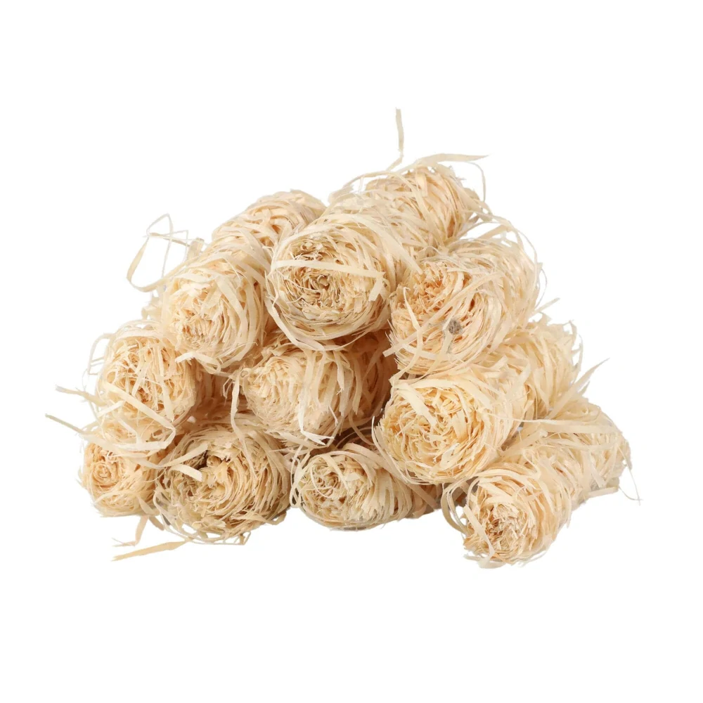 zvitok z drevitej vlny o dĺžke cca 6 - 8 cm, v priemere 2 - 3 cm